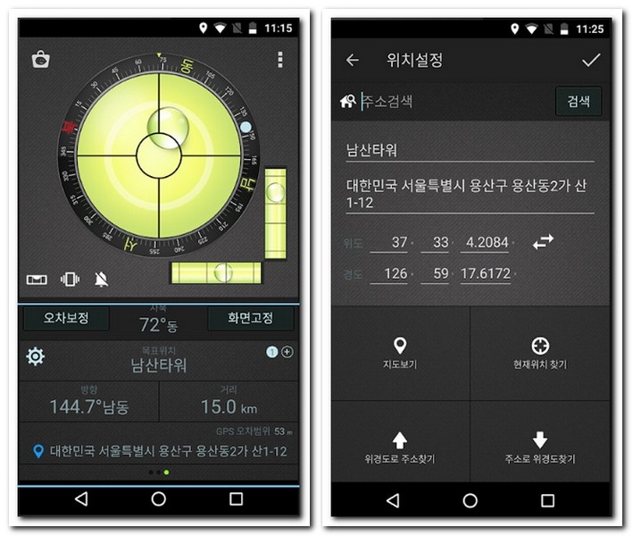 필자가 개인적으로 사용해본 결과 나침판 어플은 무료 다운로드가 가능하기 때문에 부담없이 사용해도 된다. 그리고 스마트폰에 기본적으로 제공되고 있는 나침반을 사용해도 되며, 보다 정확한 측정을 원한다면 앱 다운로드가 현명하다.