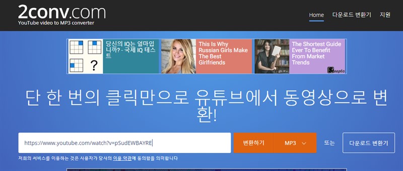 각종 배너가 많지 않고, 깔끔한 이미지에 빠르게 유튜브 영상을 mp3로 변환할 수 있어 편리하게 사용할 수 있는게 장점인 사이트이다.