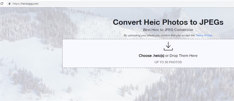 1. 그림처럼 https://heictojpg.com/ 사이트에 방문한다. heic 확장자를 가지고 있는 이미지를 최대 50개까지 업로드 가능하다.