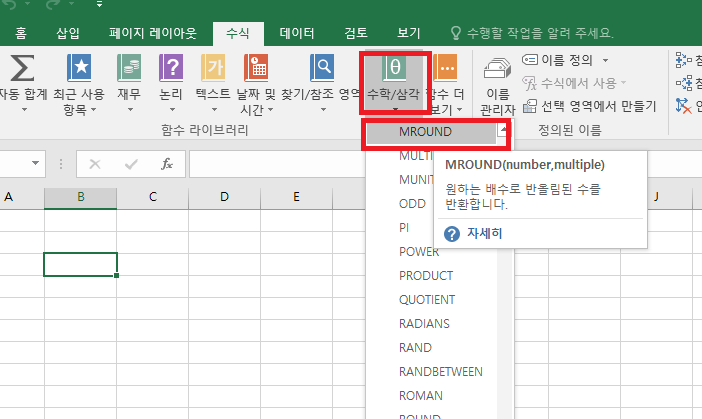 [엑셀 -> 수식 -> 수학/삼각 -> MROUND] 선택한다.