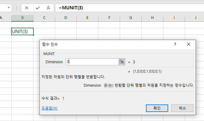 엑셀 MUNIT 함수 단위 행렬 반환 방법 및 예제