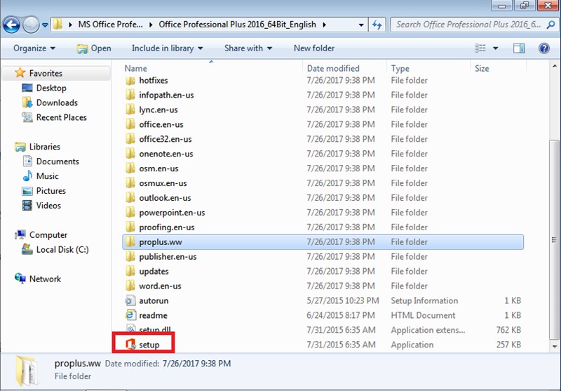 영문버전이기 때문에 한글팩을 별도로 다운받아 설치하면 한글 오피스 2016을 사용할 수 있게 된다.