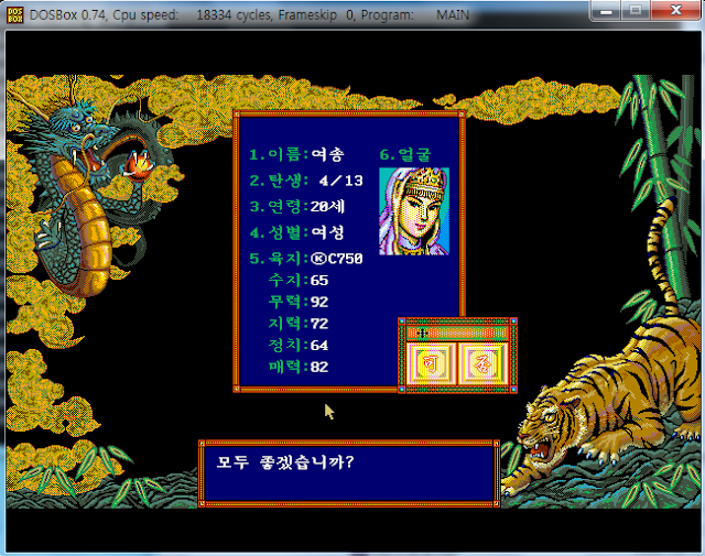 이제 거의다 끝나가는거 같은데, 필자는 고전도스 게임 삼국지3를 실행하였다. 삼국지3 디렉토리로 이동해서 게임을 실행해 보도록 한다.