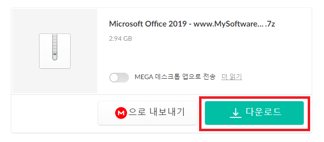 그럼 다운로드 받을수 있는 Mega 클라우드 서버로 이동하게 된다. 7z 파일로 압축되어 있으며, 용량은 대략 2.94GB 정도 된다. 다운로드 받도록 하자.