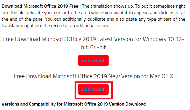 스크롤을 내려서 화면 중앙쯤 내려가게되면, Free Download Microsoft Office 2019 Latest Version for Windows 10 32-bit, 64-bit 라는 다운로드 페이지가 보인다.