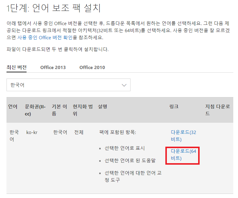 MS Office 2019 한글패치 방법
