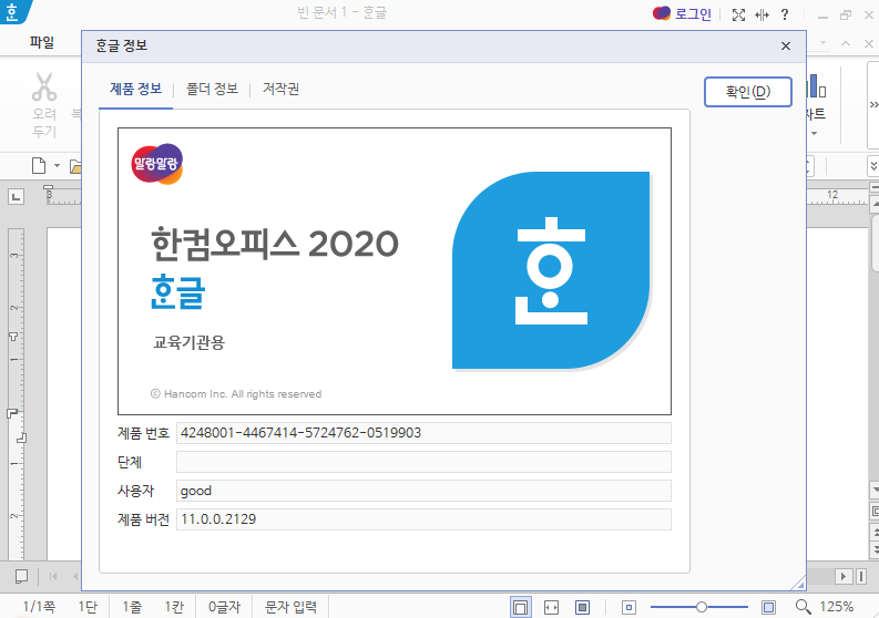한글2020 한컴오피스 교육기관용 정품인증 체험판 제품번호 크랙 다운로드 방법