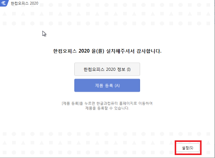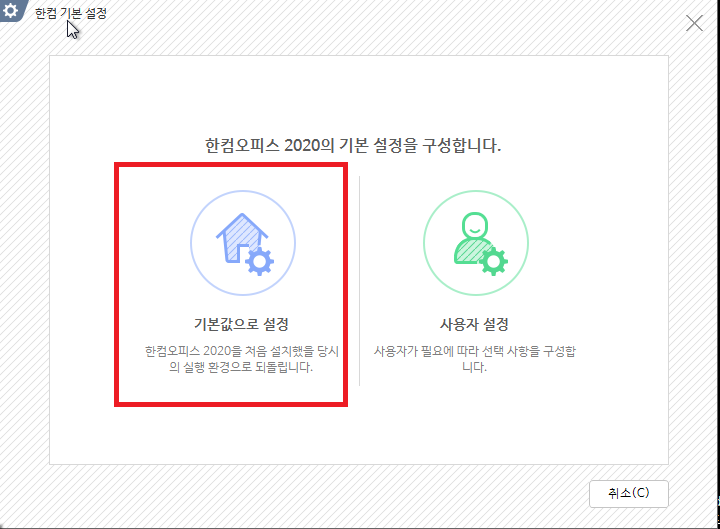 한컴오피스2020의 기본 설정을 구성하는데, 기본값으로 설정해준다.